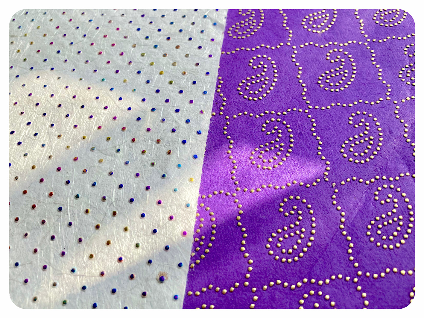 mau @admin まうです。コーヒーが好きです。 2023年12月17日(日) 10:33 日々雑感 素敵な紙屋で気に入ったデザイン… 素敵な紙屋で気に入ったデザイン紙を2枚買っちゃったよー🙌 ネパールの木の繊維で出来てるんだ。和紙より少し硬めで手触りもいいし光る粒々がキラキラしつつも渋い。そしてちょっと浮き立っててエンボスっていうのかな?光の当たり加減で変わっていく様が心地いい。何かに使う予定はなくてただ、ただ一反の布地な気分でこの紙、眺めまくろうと思います…😚