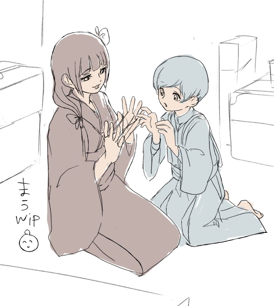 ふたりであやとりしてるところだ…