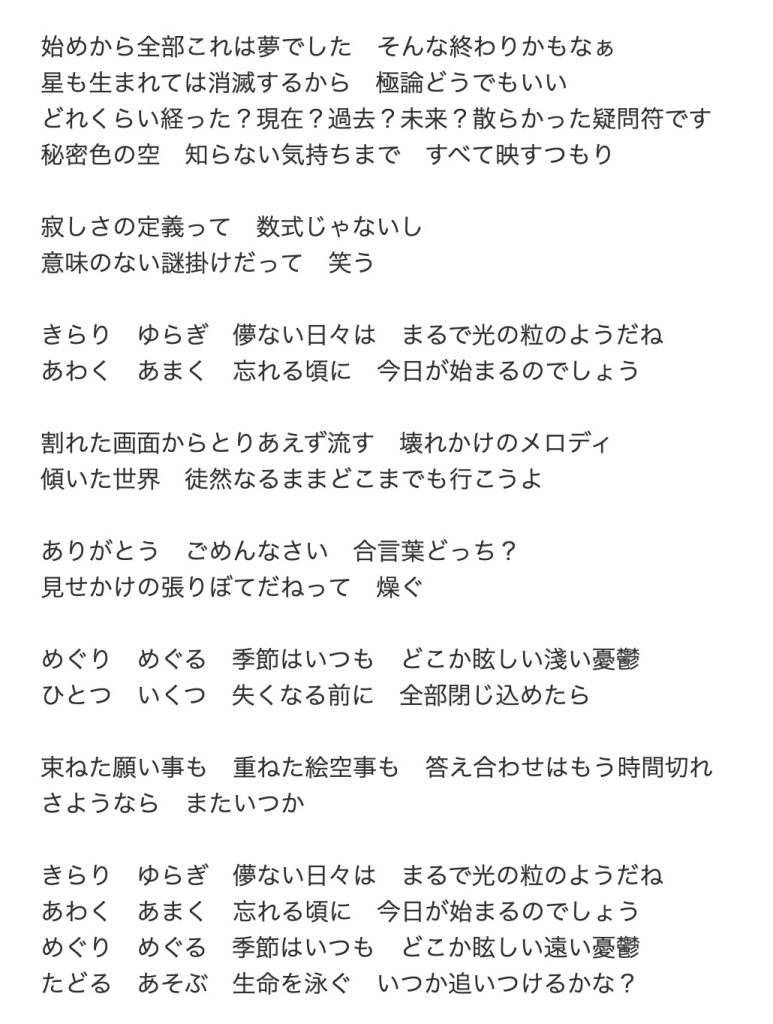歌詞「使えない 伝えない 魔法だけが残る 手を出さず僕らは上の空」 双子の願い、お互いの約束事が呪いとなって…。泣けます。